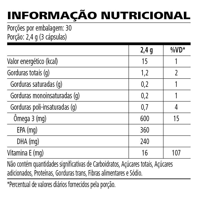 Com uma exclusiva combinação de óleos marinhos refinados e vitamina E, ele fornece a dose ideal de Ômega-3 (EPA e DHA) — nutrientes essenciais que o corpo não produz, mas que desempenham papéis vitais na saúde cardiovascular, cerebral e imunológica.