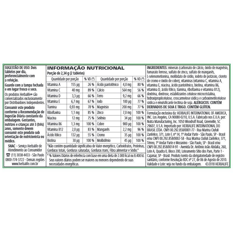 Desenvolvido com base em estudos nutricionais, o Multivitaminas e Minerais Herbalife oferece: